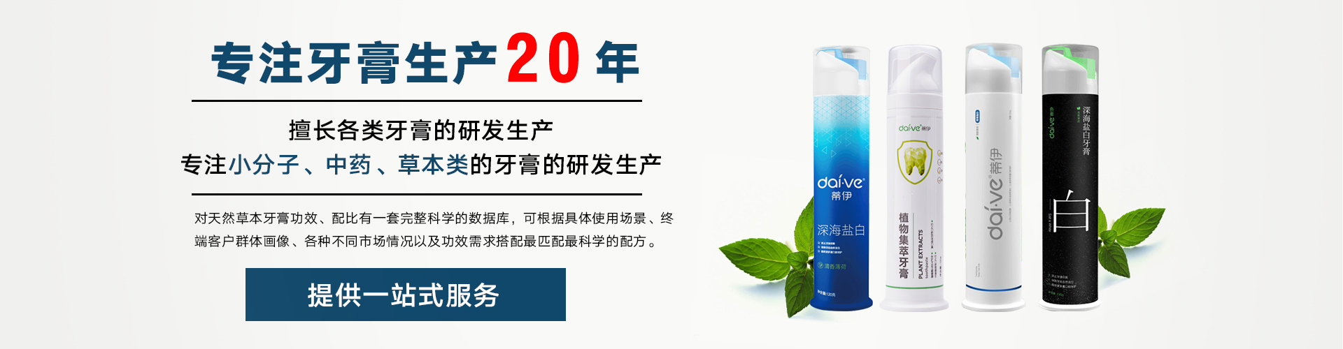 浙江泰康生物科技有限公司地處浙江省歷史名城衢州 是一家集蘆薈種植、產品研發、農產品深加工、銷售為一體的專業性公司。 專注于日化類產品研發生產18年的泰康生物,具有豐富的牙膏研發、生產經驗。 服務過上千家企業,擁有超過數千種配方,擅長蘆薈、中藥草本類牙膏的研發生產。 對于牙膏功效、配比有一套完整、科學的數據庫,可根據具體使用場景、 終端客戶群體畫像、各種不同市場情況以及功效需求搭配匹配科學的配方,適用國內外各類市場。 十幾年來,公司銷售業務從周邊擴散至全國,從國內市場出發漸漸開始走向國際市場,其